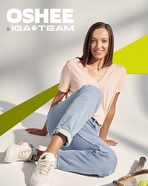 Iga od początku 2023 roku jest twarzą marki **On**, jako pierwsza kobieta-tenisistka w rosterze firmy ([On Shop][4], [Wikipedia][5]). Wcześniej była związana z Asics, a jeszcze wcześniej z Nike. Od dawna współpracuje także z różnymi sponsorami – Oshee, Rolex, Porsche czy Visa ([Wikipedia][5]).